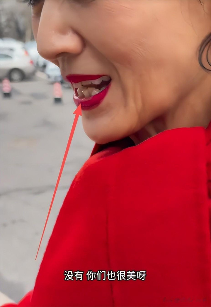 枯黄的发丝、突兀的假发包、安适妆容与牙齿气象,冲破了全球印象里精修滤镜下的优雅形象。