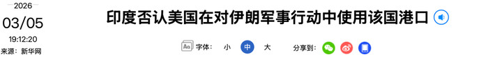 印度酬酢部通过社交媒体发文说,又名退役好意思国军官给与媒体采访时称,好意思国舟师在对伊朗军事步履中使用印度多个口岸,这一说法空幻,是“假音问”。