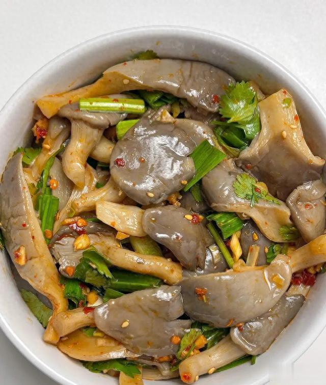 换盘凉拌平菇。