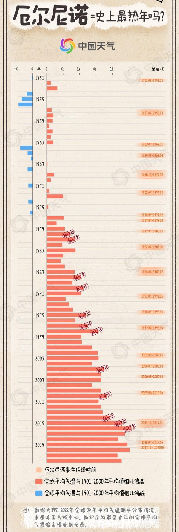 中国天气网统计风物大数据发现,厄尔尼诺擅长制造“暖冬”“史上最热”、暴雨洪涝等一系列顶点天气样式事件,致使激励人人性的样式特地。而况,厄尔尼诺时时也会加高人人平均气温的升高,屡次创下最暖记载。在人人变暖的大布景下,厄尔尼诺的强度越强,对人人平均气温的教训也就越较着。比如2014年至2016年,厄尔尼诺的强度达到了超强级别,这三年人人平均气温聚首创下新记载。