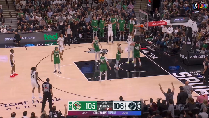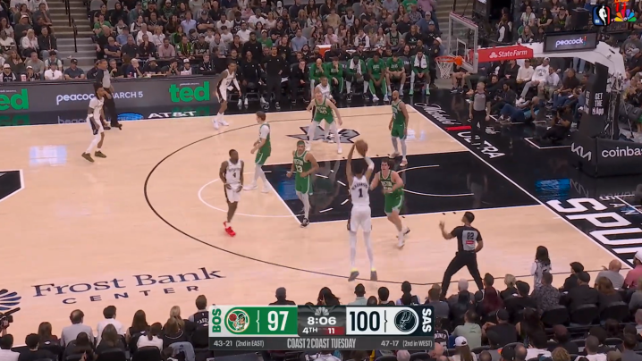 需要说的是,文班亚马的39分里有36分来后来三节,他鄙人半场拿了24分,第四节中间段的三分+扣篮+三分卓绝关节。