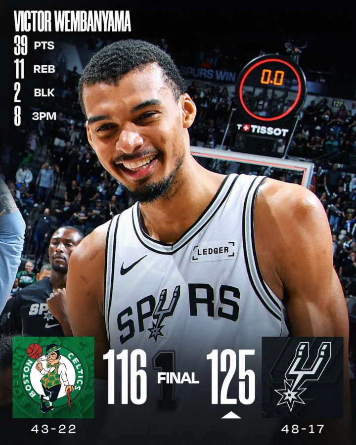 通例赛,马刺主场125-116投诚凯尔特东说念主。