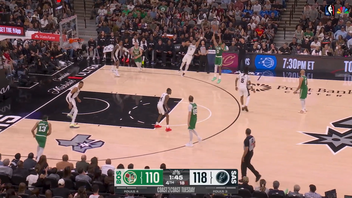 直至时期剩下1分43秒前,塔图姆的三分投进之后,凯尔特东说念主只以113-118过期马刺5分,然后,站出来的恰是福克斯。