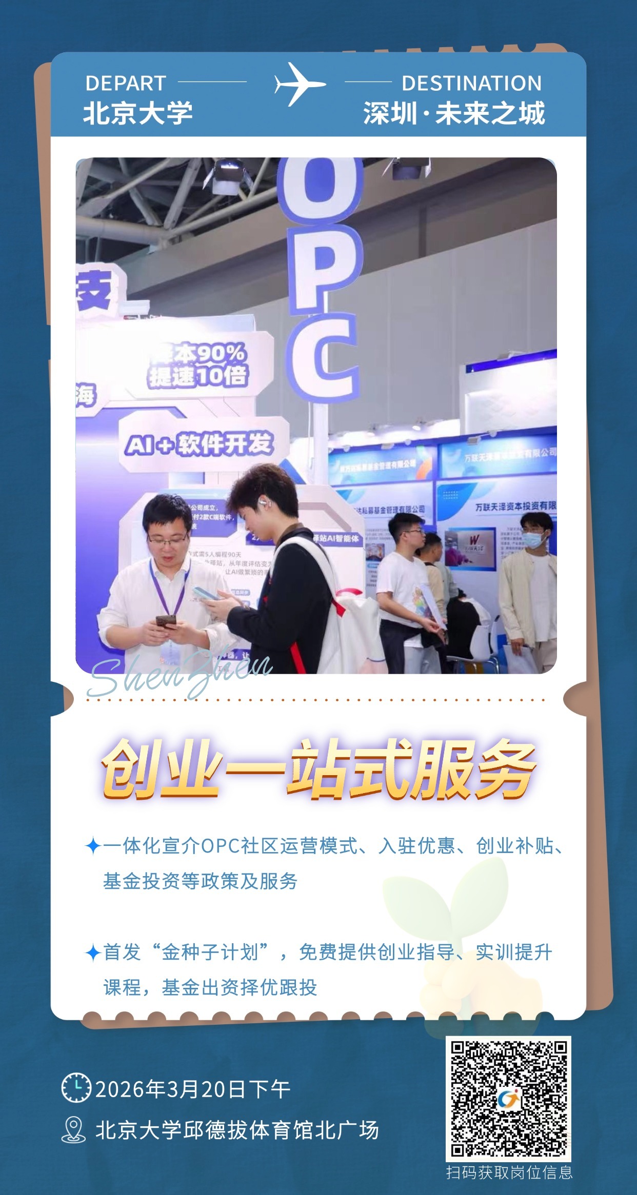 此外,招聘活动初度诞生OPC创业扶抓宣介区域,南山模力营、福田天神荟、智方舟、宝安大公坊等专科孵化载体与天神母基金等创投契构到场,为有创业意愿的学子提供空间入驻、补贴优惠、基金投资的“一站式”辩论。首发深圳市“金种子霸术”,面向清华北大等高校彩选40至50个创业名堂,免费予以创业指导、实训升迁课程,并择优由天神母基金跟投。