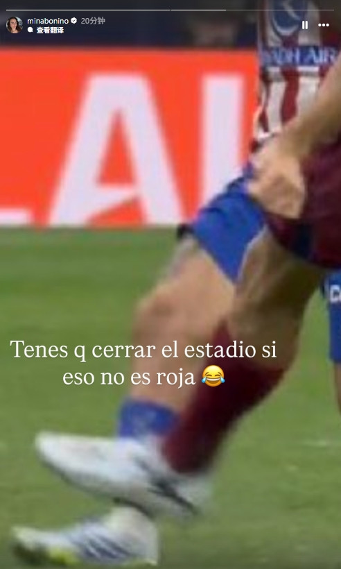 关于马丁蹬踏未吃红牌,巴尔韦德夫人Mina下半场进行时在个东谈主社媒发布快拍:“淌若这算作都不是红牌的话,那怒放场可以凯旋关门了。”