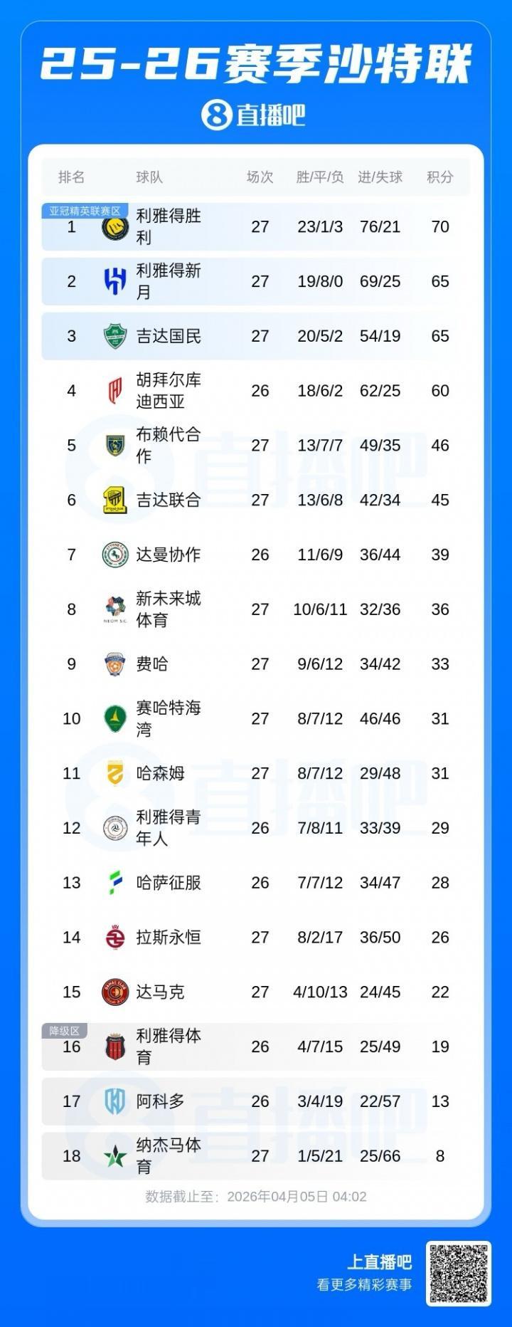 还剩7轮!沙特联积分榜:到手5分上风领跑,月牙三连胜已矣