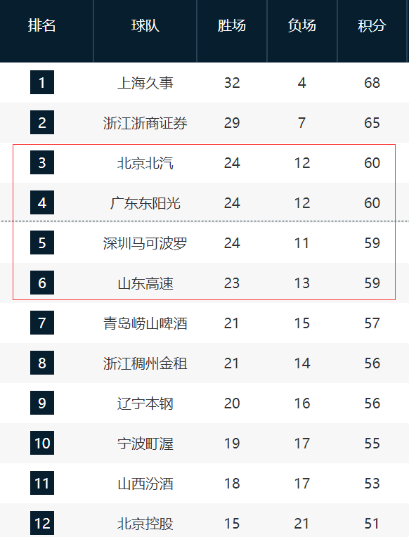 CBA惯例赛只剩下六轮比赛了,现时只须上海男篮和广厦男篮的名次细目了,其他球队之间的差距王人不大,一场比赛可能就会影响名次。
